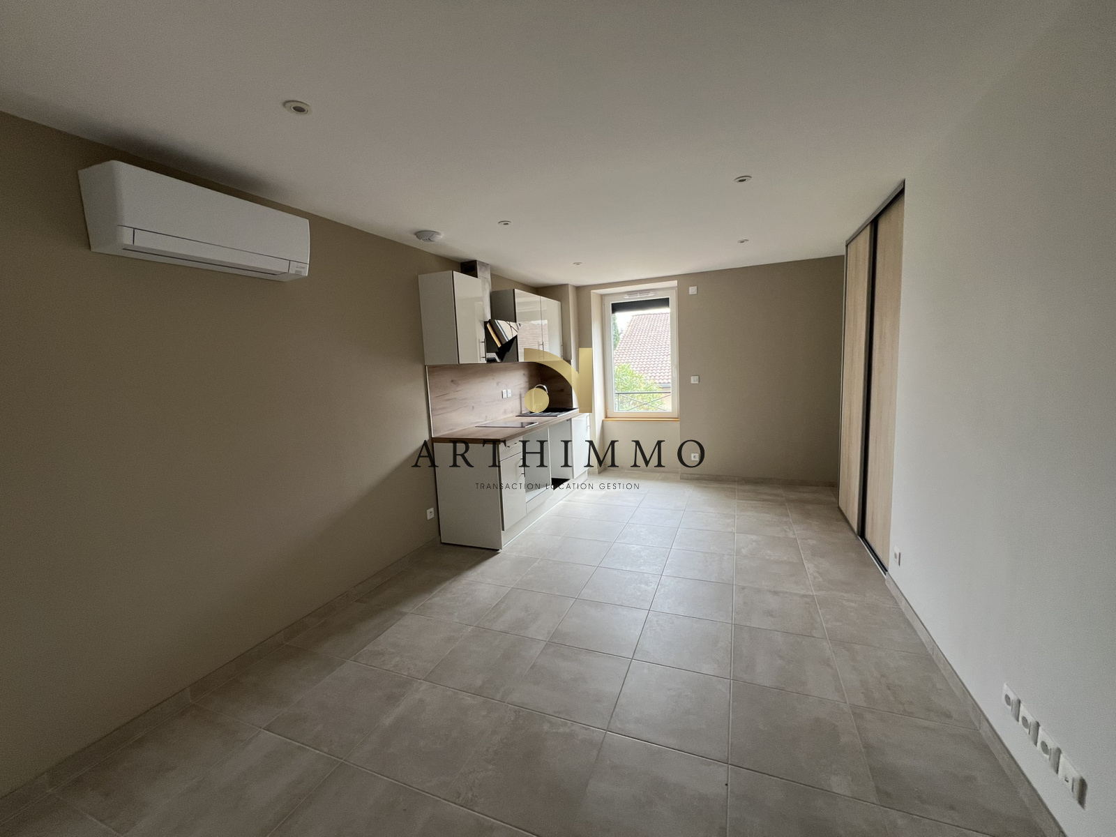 GENISSIEUX Dans le village Dans une maison de village entièrement rénovée, au 1er étage Beau T1 de 26m² refait à neuf une cuisine meublée ouverte 2un espace nuit une salle d'eau et un wc DPE C 320 -A 3 soit une consommation entre 320 et 500 Euros/an - Dépot de garantie 450 Euros Honoraires agence 286 Euros Place de parking privé Loyer 475 Euros CC