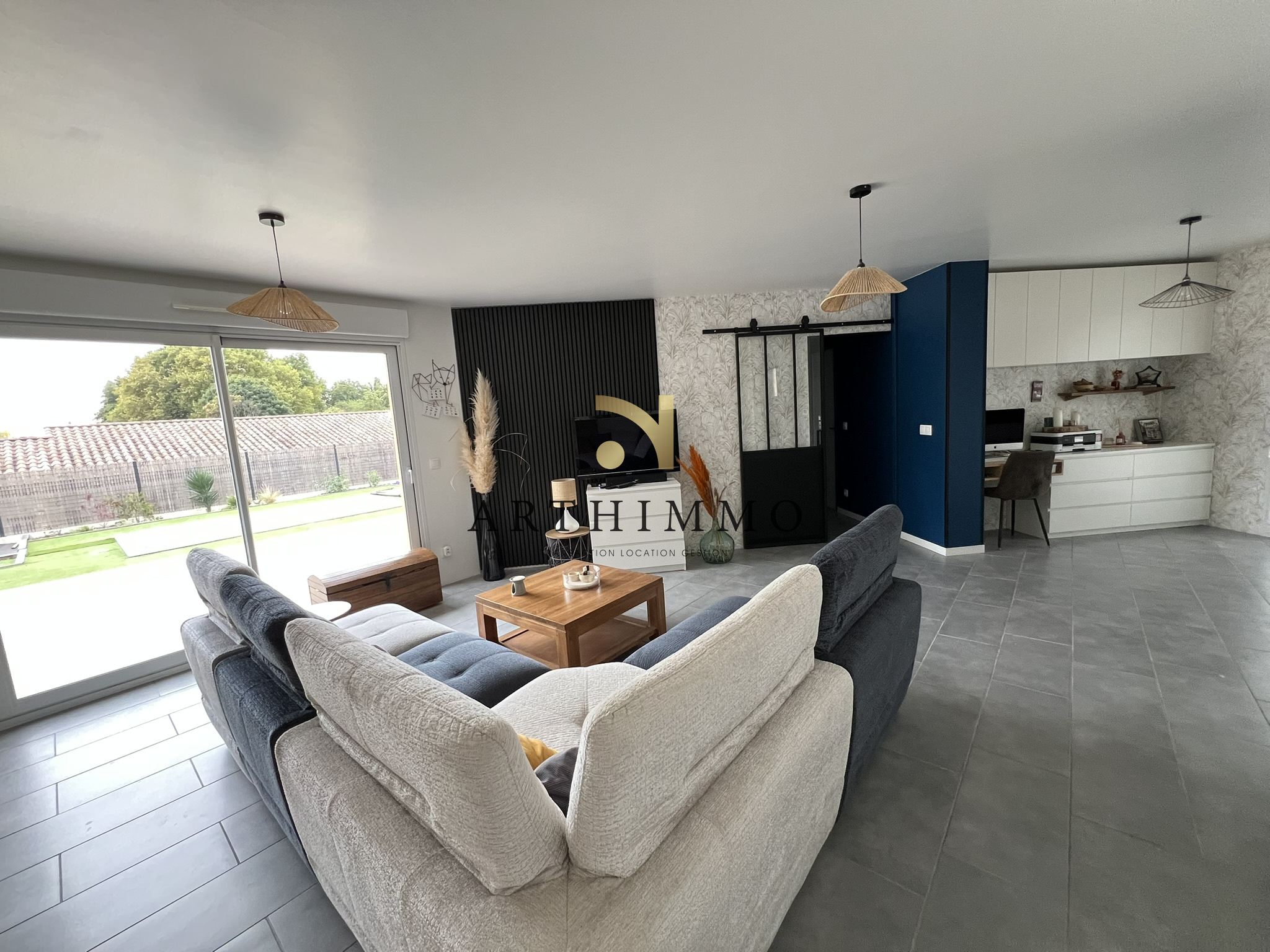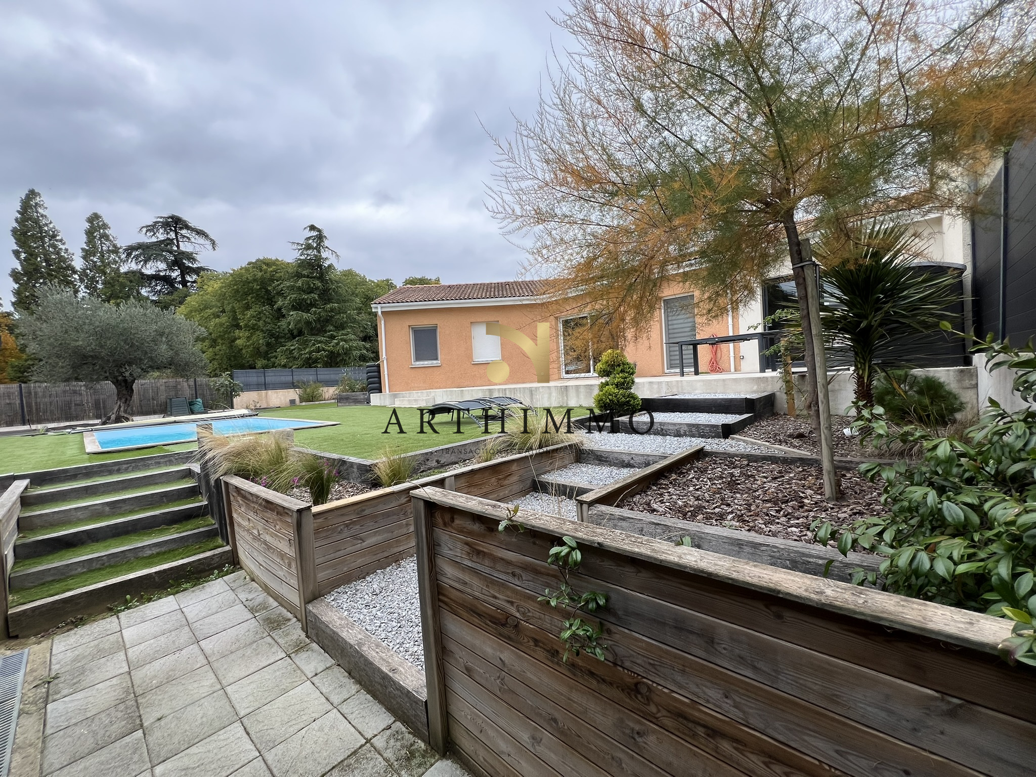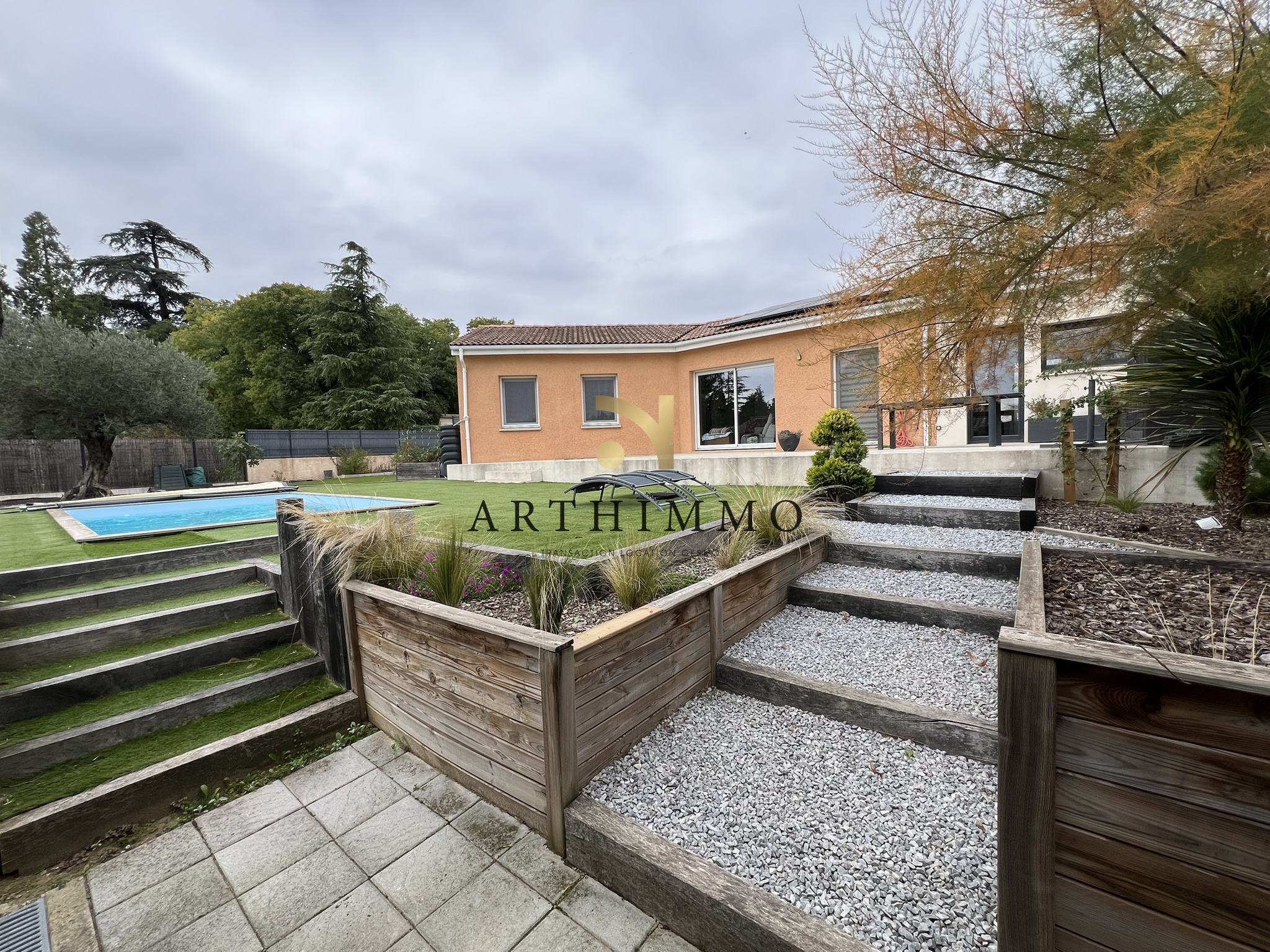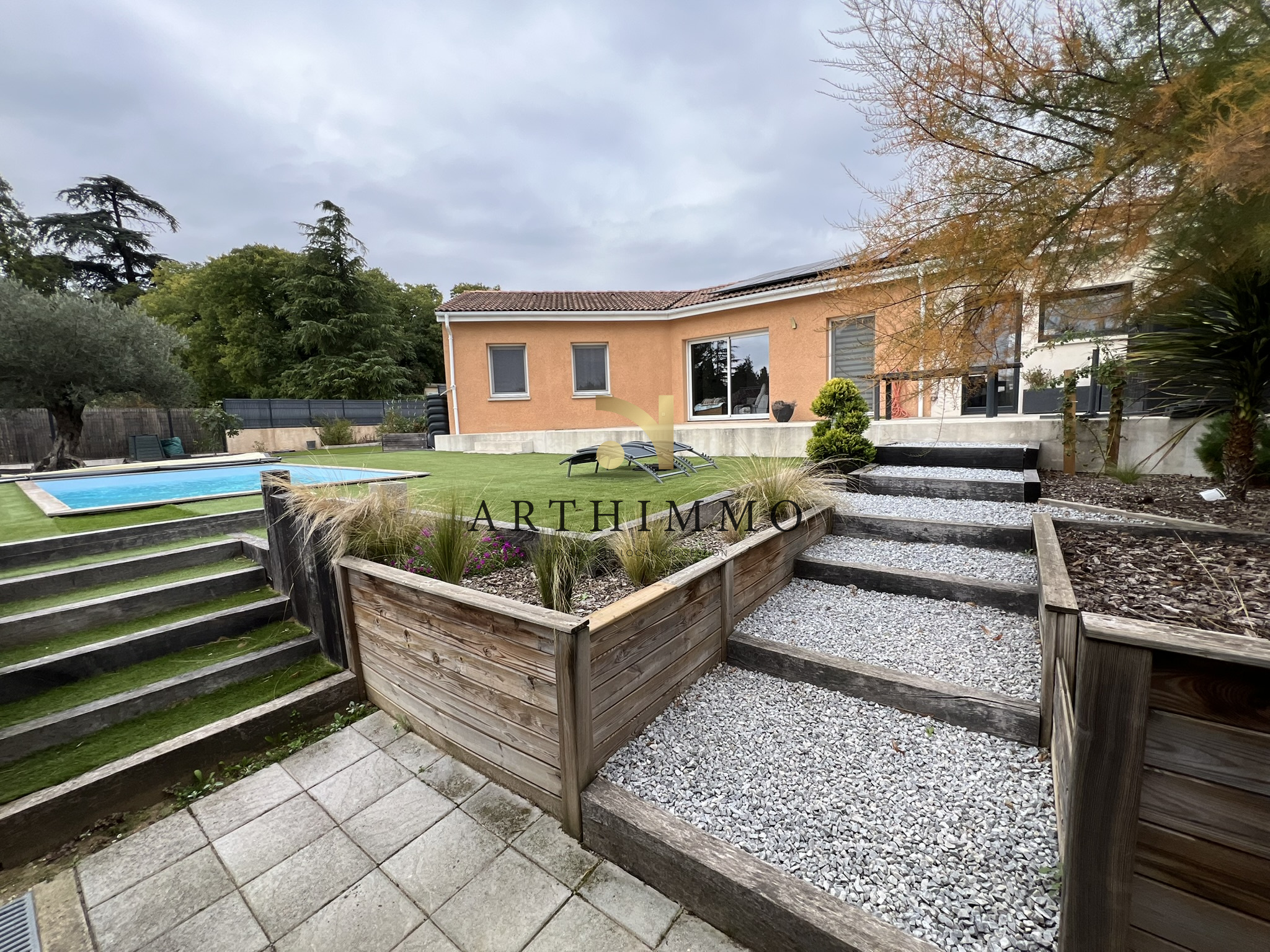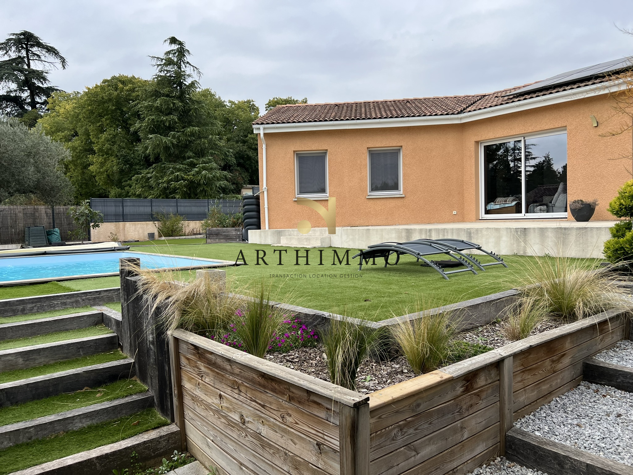 à PEYRINS proche centre maison de plain-pied construite en 2014 avec une extension en 2022 pour obtenir 109 m² de surface habitable composée d'un hall d'entrée avec un espace bureau un séjour salon lumineux 31 m² donnant côté Sud sur une terrasse 7,50 m² une cuisine équipée meublée 8,67 m² une suite parentale16 m² avec dressing salle d'eau et un w-c.un second espace nuit indépendant avec 3 chambres de 9 à 10 m² une salle de bain avec w-c..5,57 m² Terrain entiérement paysagé avec goût de 680 m² une piscine 5 x 3 un espace salon de jardin et un espace potager. DPE : A 55 - A 1 estimations des coûts d’énergie annuels entre 540 E et 770 E chauffage pompe à chaleur clim réversible TF 1 119 € Trés bonnes prestations panneaux photovoltaiques une borne de recharge pour véhicule élestrique le rêve avec ette ambiance des maisons du Sud de la France mais faites vite pour la visiter ! Prix : 367 500 Euros