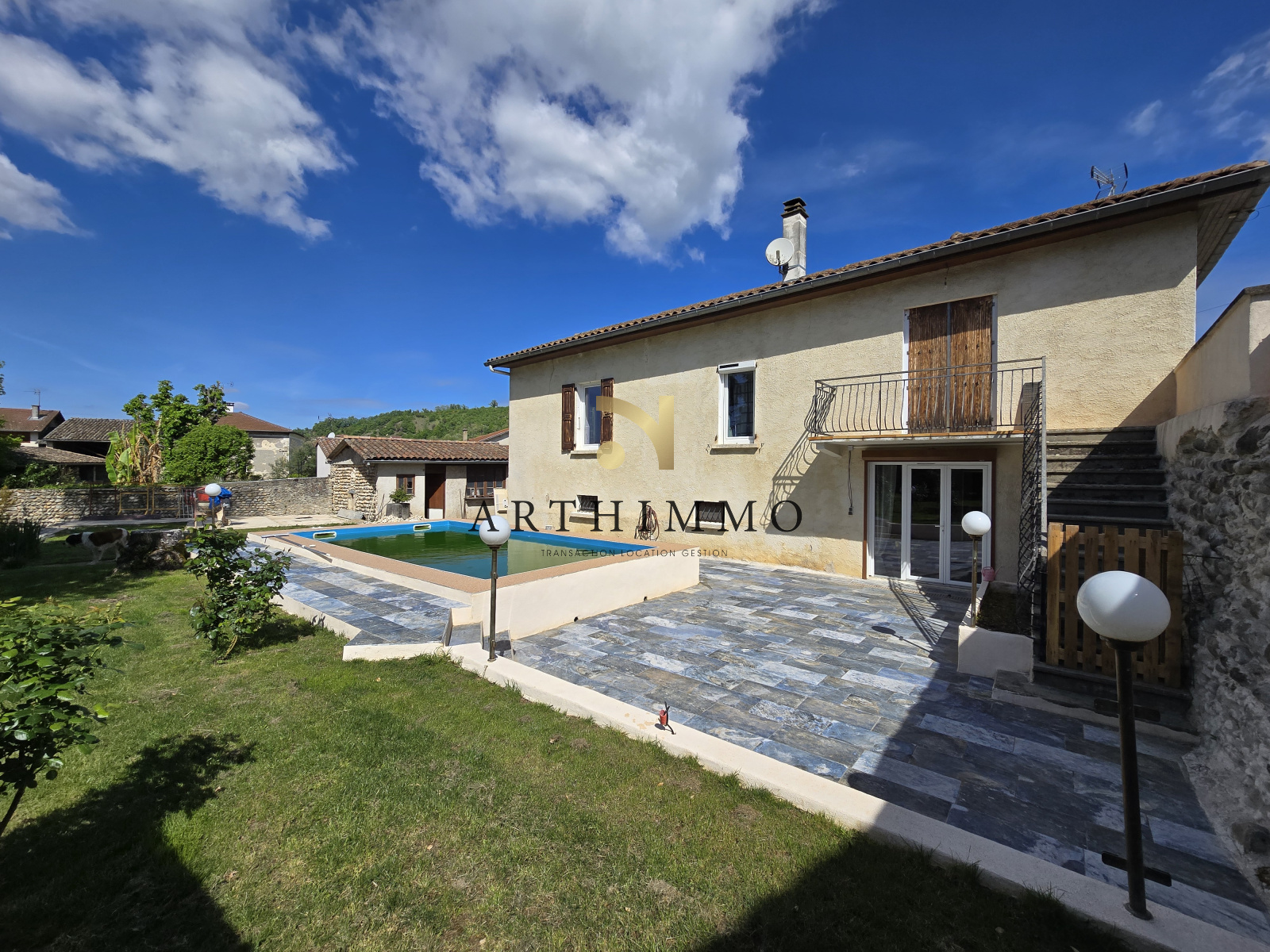 A 20 MIN DE ROMANS EYMEUX ancien presbytère rénové de 166 m² SH réparti au rdc une superbe pièce de vie 46 m² cuisine équipée salle à manger et salon celliers un bureau 10 m² une salle d’eau et une chambre 13 m² avec un dressing 6,50 m² puis à l’étage un hall 9 m² et 3 chambres avec salle d’eau et wc chacune dont une avec balcon. Une chaufferie 18 m² et un atelier 20 m² Entrée de la propriété sous un préau 77 m² avec un four à pain et un bûcher une annexe de 26 m² non attenante une piscine 7 par 3,50 avec local technique l’ensemble sur un terrain de 1634 m² paysagé et arrosé par l’eau du puits.DPE C142 - A 4. Très belle rénovation proche des commodités proximité axes autoroutiers à 25 mn Gare TGV. ! Prix : 452.000 €uros