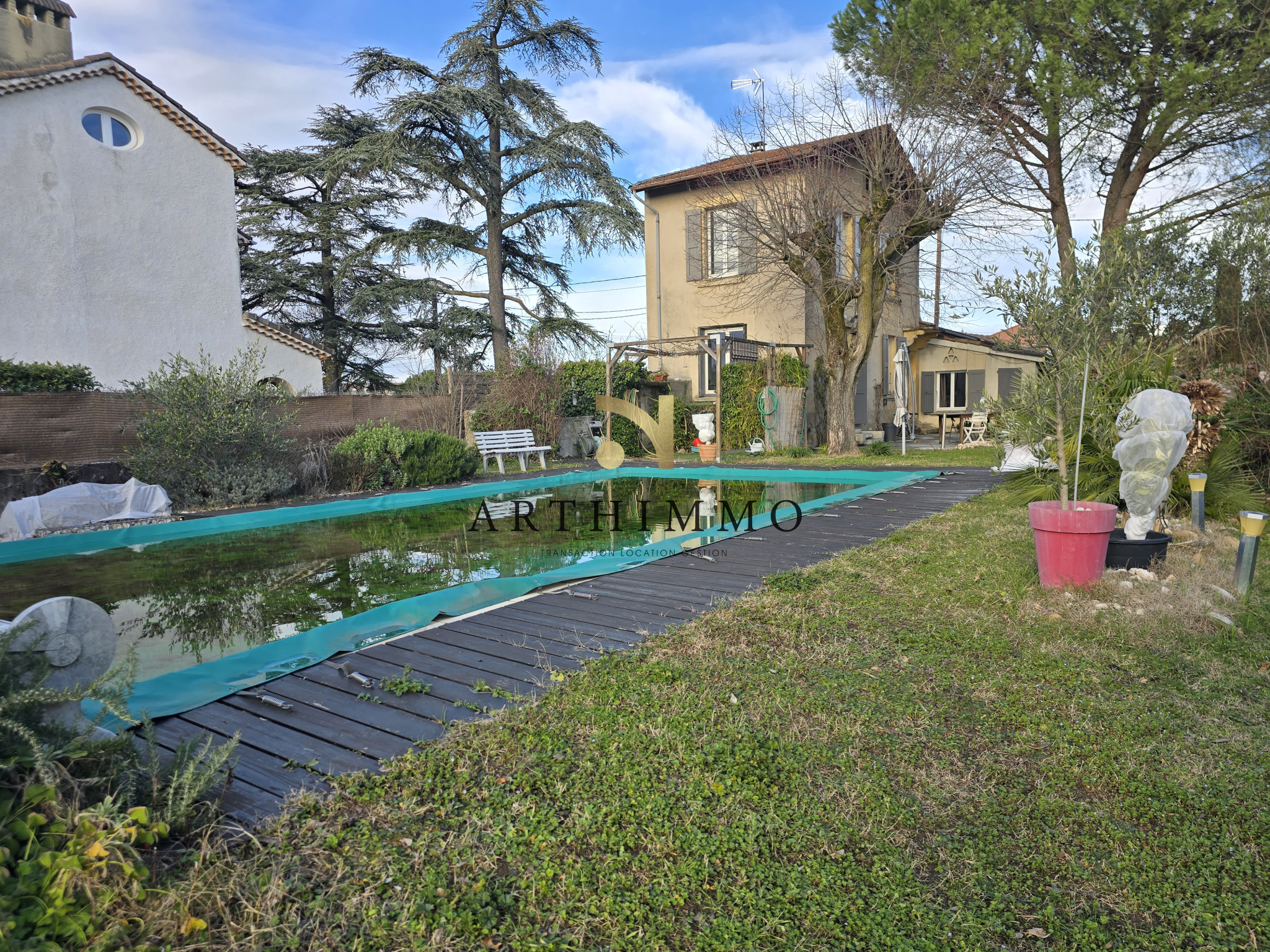 A BOURG DE PEAGE Maison de caractère du 19ème rénovée ayant beaucoup de caractère et charme d'une surface habitable de 117,98 m² plus attenant un studio de 30,23 m², la partie principale sur 2 niveaux est composée au rdc un hall avec w-c. une cuisine équipée de 25 m² avec coin repas un premier salon de 23 m² avec son poêle bois suivi d’un 2ème salon 19 m² à ‘étage une mezzanine desservant une chambre mansardée de 16 m² au sol un couloir qui dessert 2 chambres 9 et 11 m² une salle de bains et un w-c. au-dessus un grenier de 33 m² aménageable. Le studio de plain-pied est composé d’une pièce de vie 27 m² cuisine ouverte équipée et une salle d’eau avec w-c. Une cave enterrée de 16 m². Piscine 10 x 5 hauteur 1,45m avec un espace salon d’été. DPE : C 155 - C 22 estimation des coûts d'énergie annuels entre 1.860 € et 2.580 € TF 1.588 €. Terrain environ 1176 m². Proche des commodités à pied des commerces écoles collège et lycée accessibilité autoroute Grenoble Valence et 10 mn gare TGV, cette propriété bourgeoise est faite pour vous venez la visiter ! Prix : 446.000€